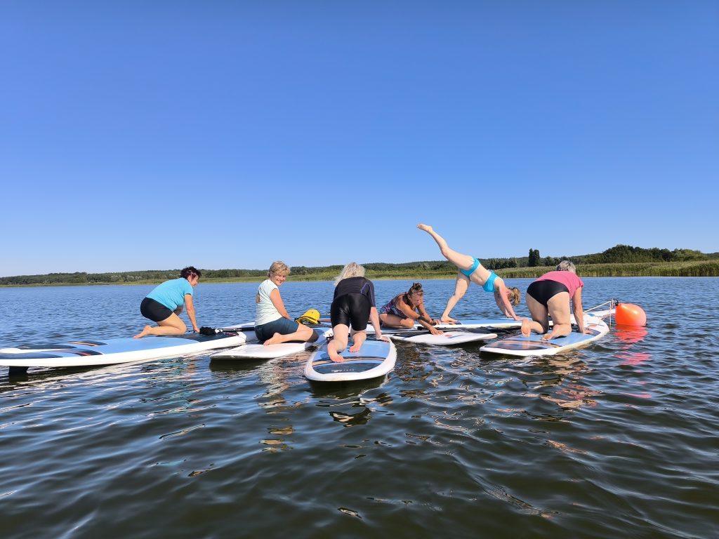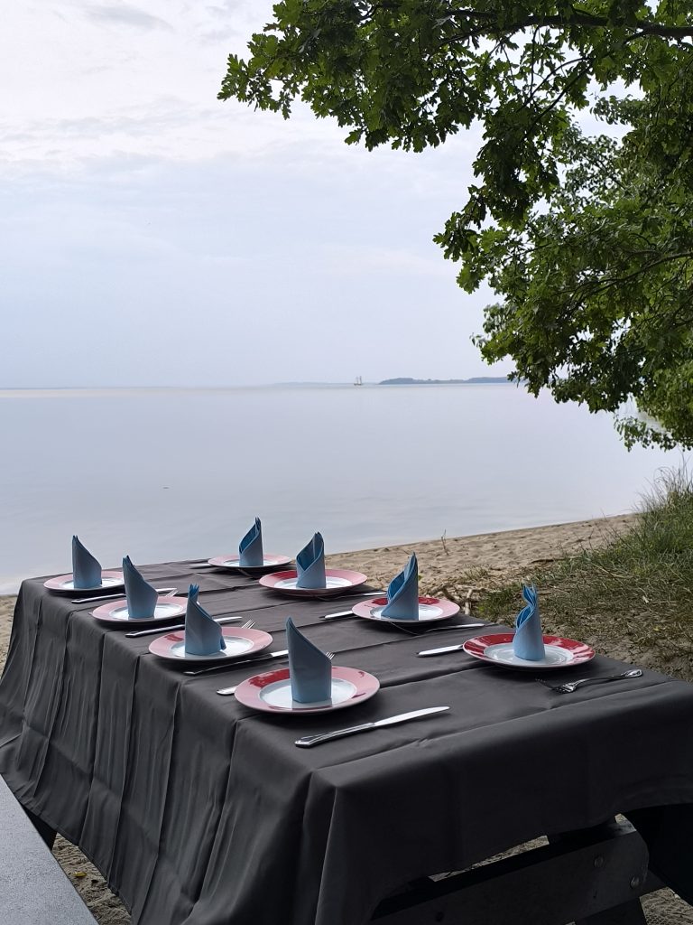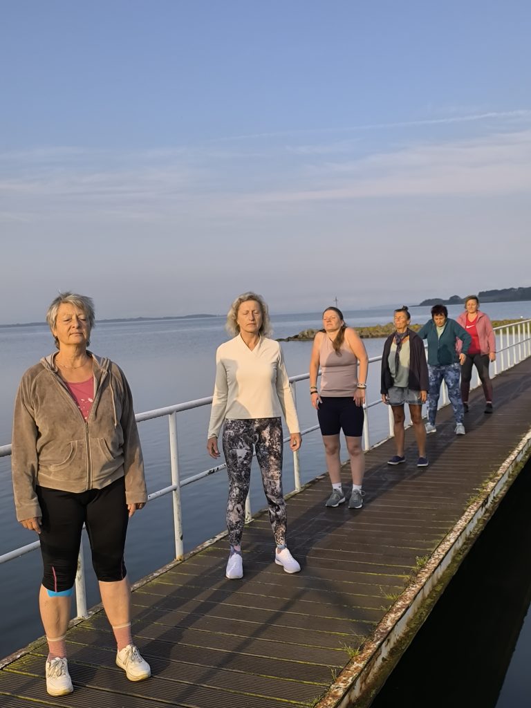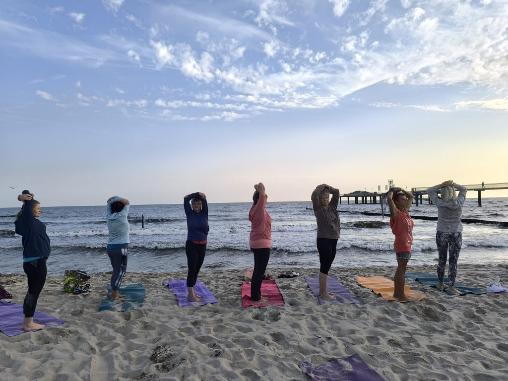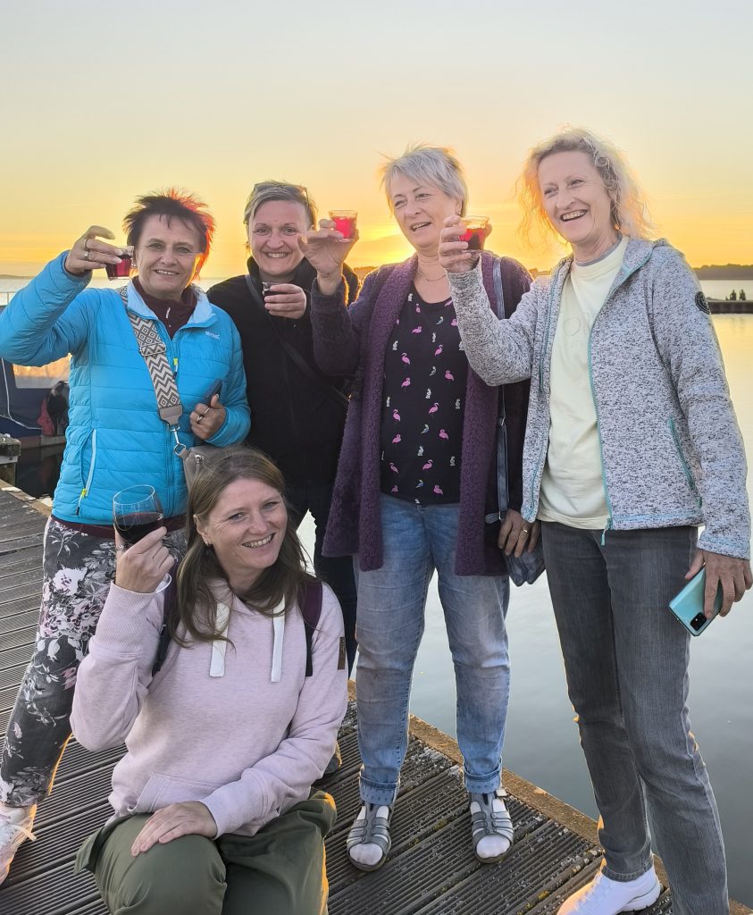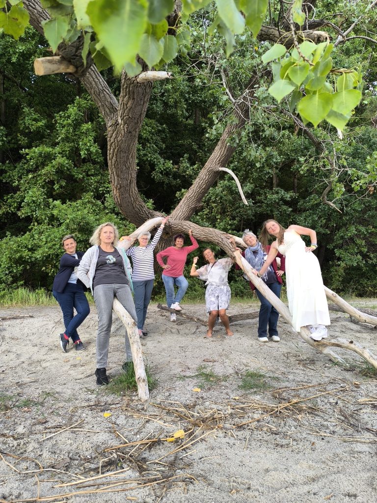Ein Hoch auf das was vor uns liegt. Am anreisesonntag waren wir zwar noch nicht vollzählig, aber voller Vorfreude. Am späten Abend, der Vollmondnacht mit Mondfinsternis, kamen noch 2 Frauen an. Start war in Ückeritz. Am Kaffee Knatter haben wir Picknick, Yoga abends und morgens und SUP Yoga genossen.