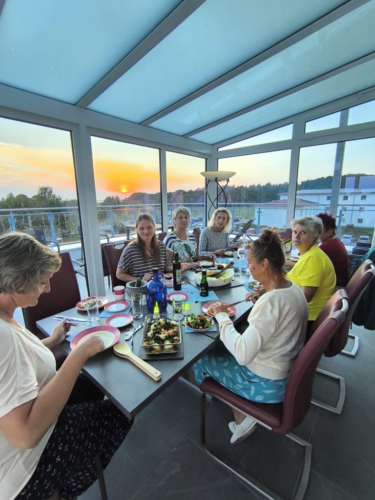 Bis zum Dienstag waren wir 7 Frauen und kurz mal 8, denn nach dem Umzug ins Penthouse in Koserow war Wechsel- eine reiste früher ab und dafür kam die andere dazu. Eine Bereicherung für unseren Austausch sowieso! Gesundheitsthemen und alle überstandenen Einschränkungen waren natürlich Gesprächsinhalt.