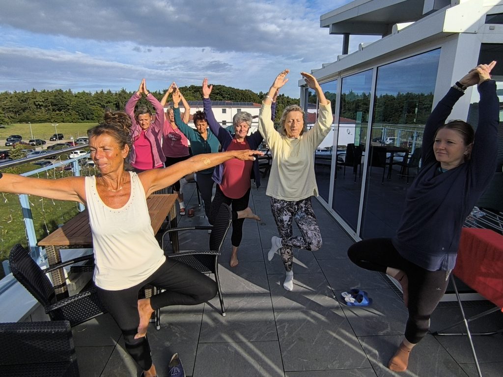 Bekommen hat er beste Atemluft mit täglichen Übungen auf der Terrasse, frisches Wasser beim Eisbaden und Wassertreten, Dehnung und Entspannung drinnen und draußen. Der Kopf fand das atemberaubend schön und hat allein, zu zweit oder in Gruppe Geselligkeit, Einsamkeit, Spiel und Spaß als freudige Erinnerung gespeichert. Tägliche Bildungshäppchen beim gemeinsamen Kochen und Speisen, der Typenbestimmung und Ayurvedaanwendungen, wie Massage oder Klopfen, bereichern bis heute den Alltag danach. Und ein positiver Abdruck auf der Seelenebene spricht dafür, dass wir auch dich in einer 10er Gruppe begrüßen dürfen? Für jedes Alter, Geschlecht und Beweglichkeitslevel geeignet- komm wie du bist und gehe gereinigt, gestärkt und geschützt.