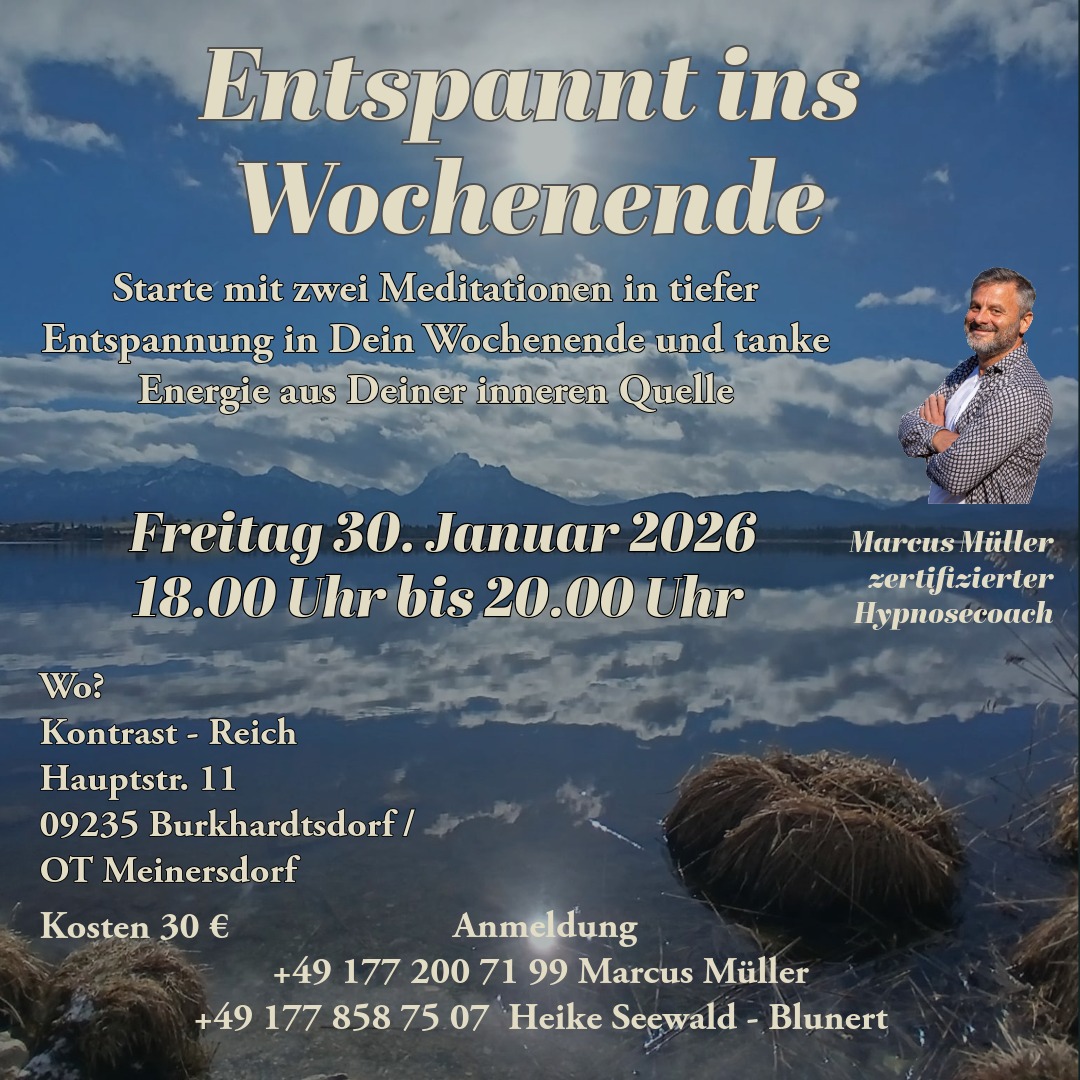 Entspannt ins Wochenende…so heißt es im Jan., März und Juni wieder, wenn du mithilfe von zwei aufeinanderfolgenden Meditationen, nicht nur die Wirkung von Stimme und Musik erfährst, sondern…